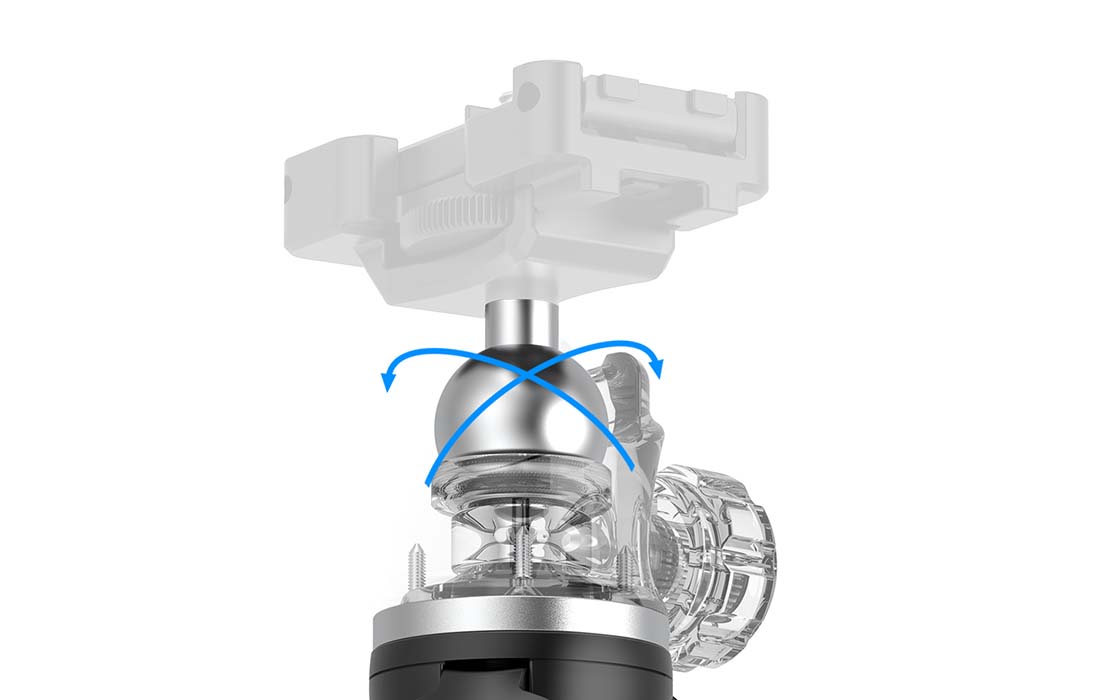 Ciesz się niemal nieograniczoną swobodą tworzenia. Panoramiczna głowica kulowa tripodu obraca się o 360°, dzięki czemu możesz bez przeszkód nagrywać w pionie lub w poziomie, a nawet pod dowolnym kątem. Zyskaj unikalną perspektywę i zachwyć swoich widzów niepowtarzalnym materiałem!