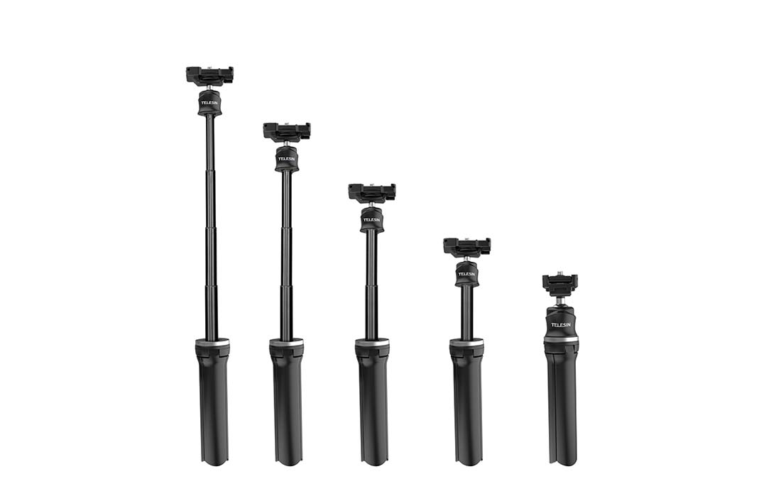 - Nagrywaj tutoriale, twórz fantastyczne selfie i wygodnie oglądaj filmy. Wysięgnik z tripodem marki Telesin został wyposażony w praktyczne adaptery, które zapewniają mu szeroką kompatybilność i umożliwiają montaż dodatkowych akcesoriów.
